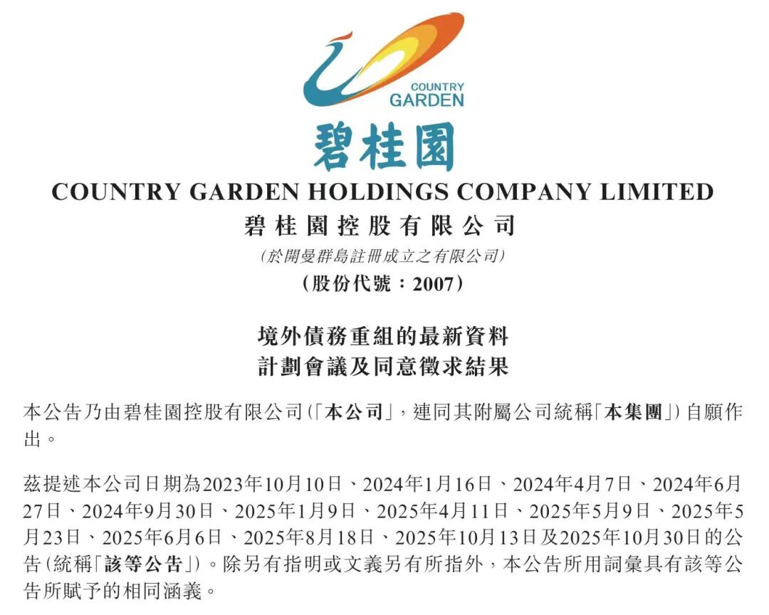 11月6日,碧桂园(02007.HK)公告称,其境外债务重组决议在5日的债权东谈主会议上顺利通过。在两个债务组别的投票中,均赢得出席并投票的债权东谈主中跳动75%债权金额的奖饰票。